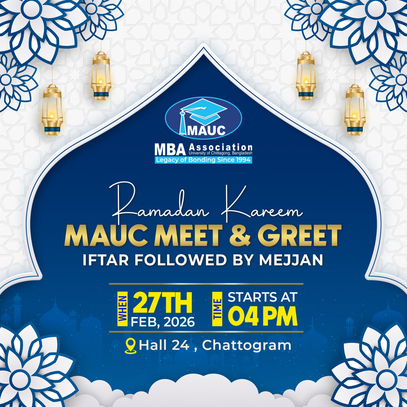 We are delighted to invite you to the MAUC Meet & Greet: Iftar followed by Mejjan 2026.